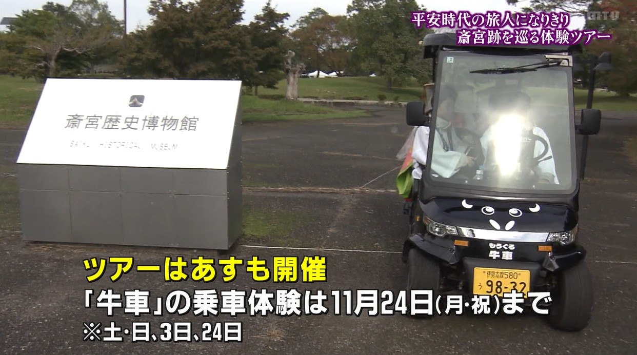 斎宮跡を巡る「牛車(もうぐる)」の乗車体験は24日までの土曜・日曜・祝日にも実施されます。