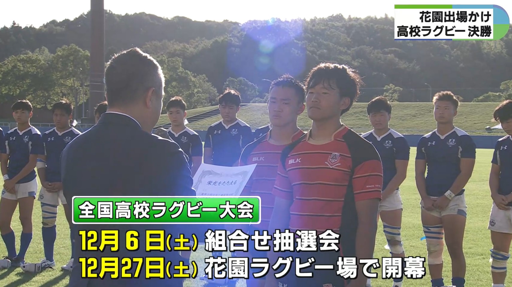 全国高校ラグビー大会は12月6日に組み合わせ抽選会が行われ12月27日に花園ラグビー場で開幕します。