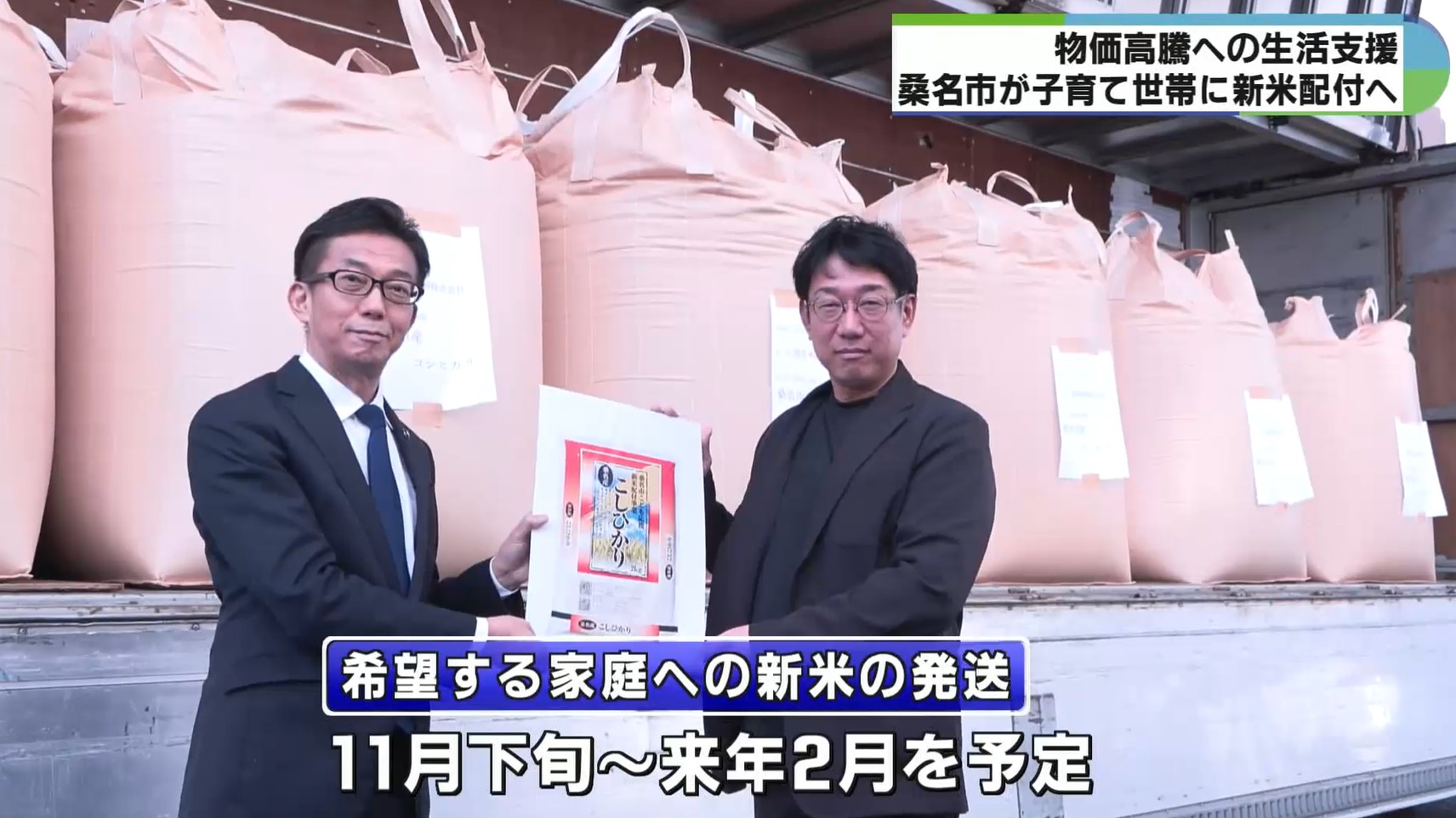 桑名市は、長引く物価高騰に対する生活支援策として、市内に住民登録がある0歳から18歳の子どもがいる世帯を対象に、子ども1人当たり2キロの新米を、希望する家庭に今月下旬から配付することにしています。