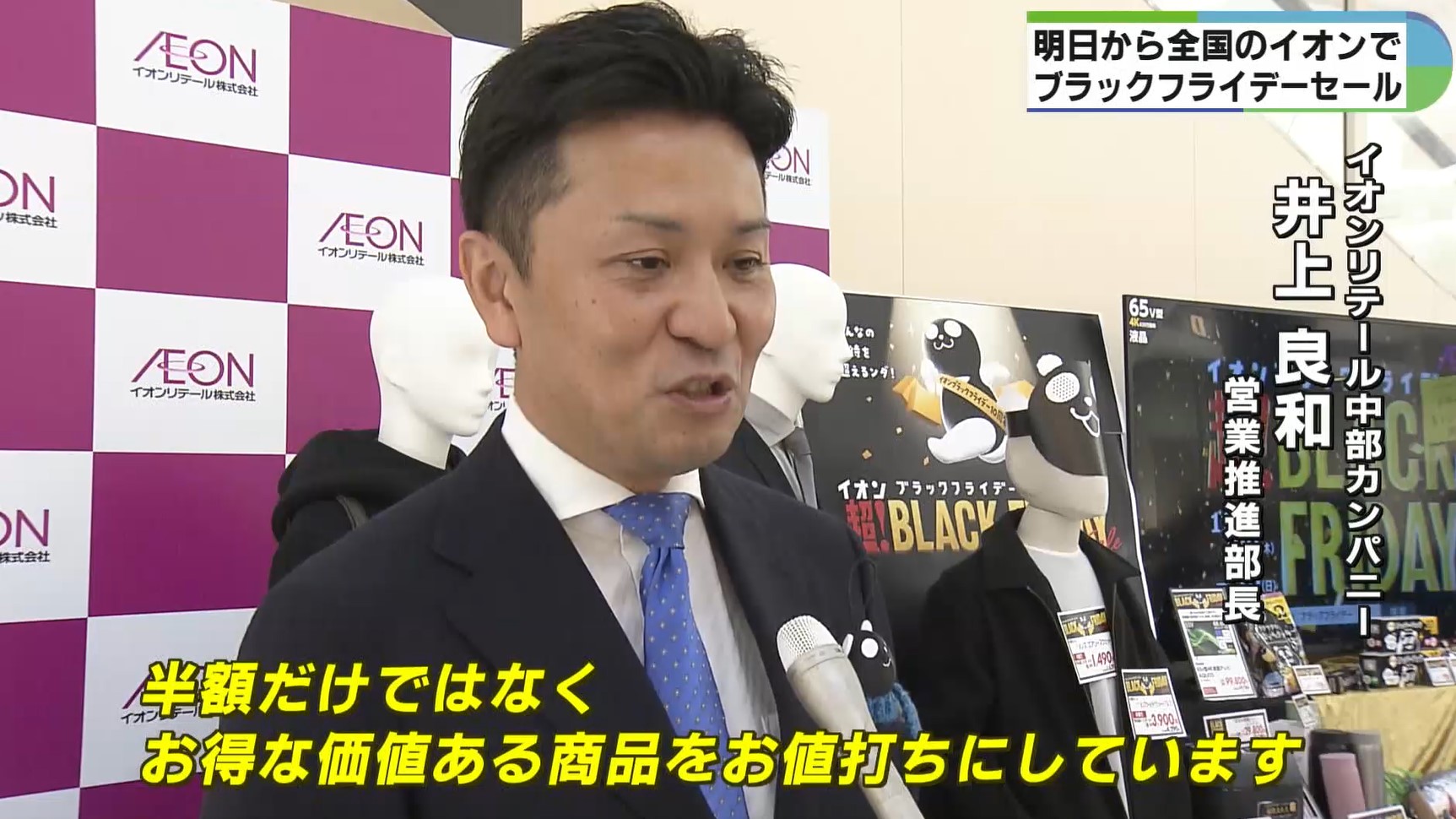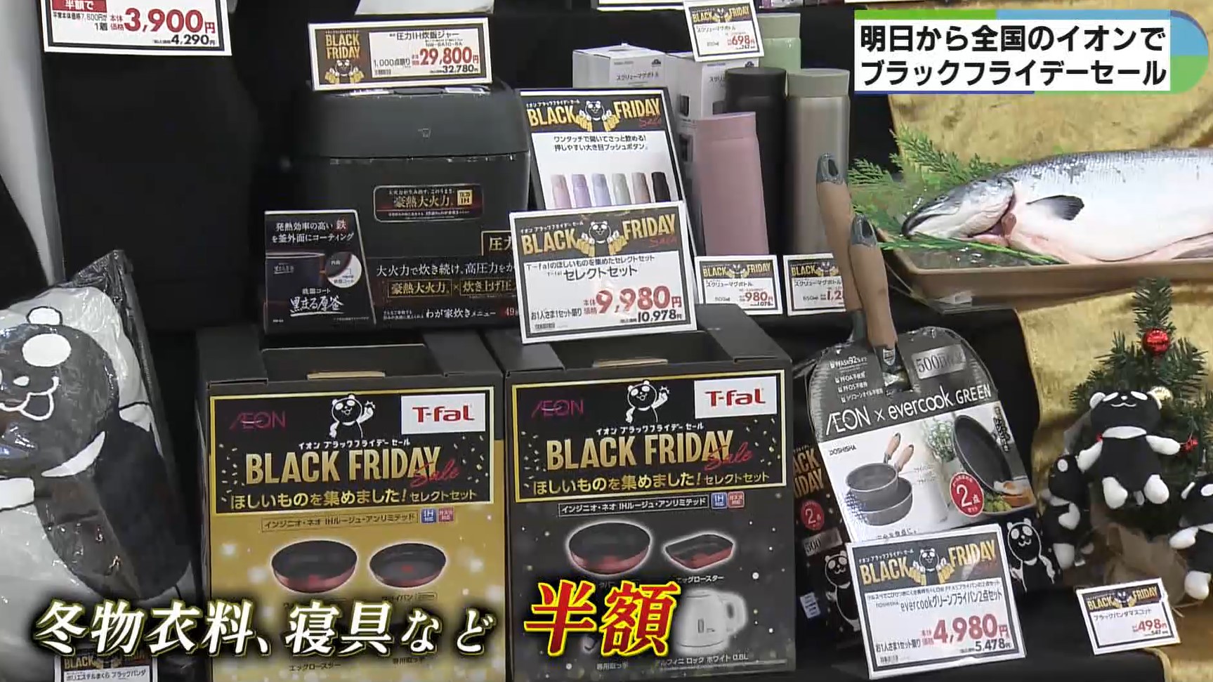 物価の高騰が続く中、様々な商品が最大半額で提供される「ブラックフライデーセール」が20日から全国のイオンなどで一斉に始まるのを前に、19日、商品説明会が開かれました。