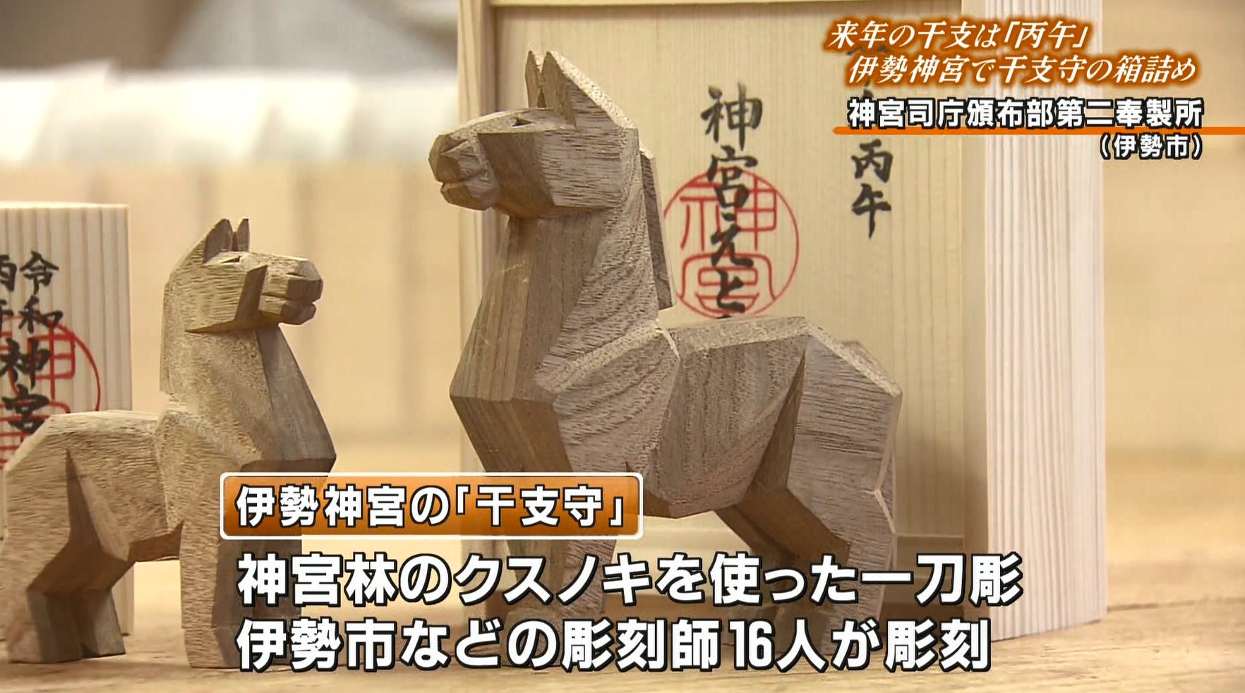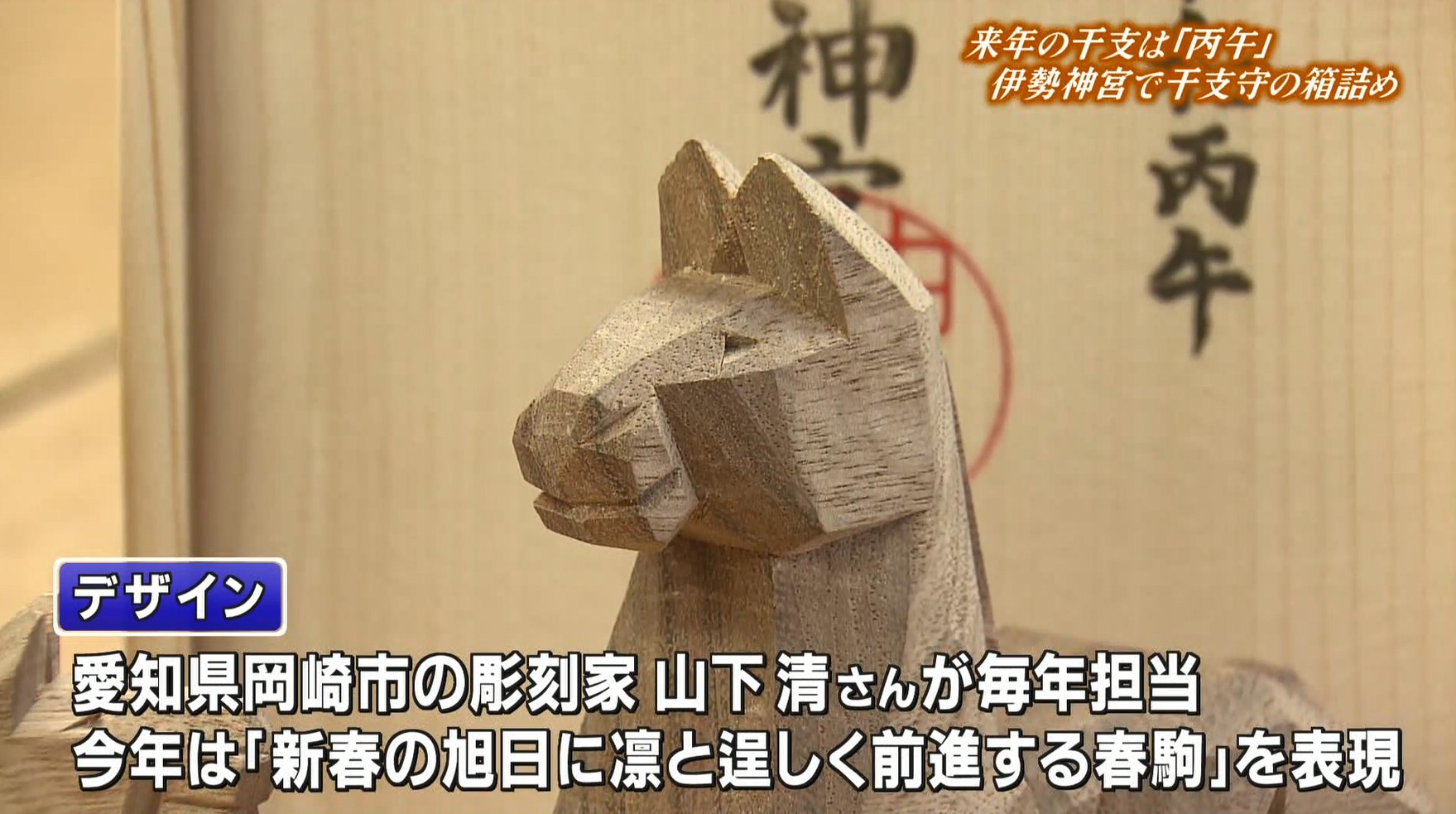 三重県伊勢市の伊勢神宮では、来年の干支「丙午」をかたどった「干支守」の箱詰め作業が最盛期を迎えています。