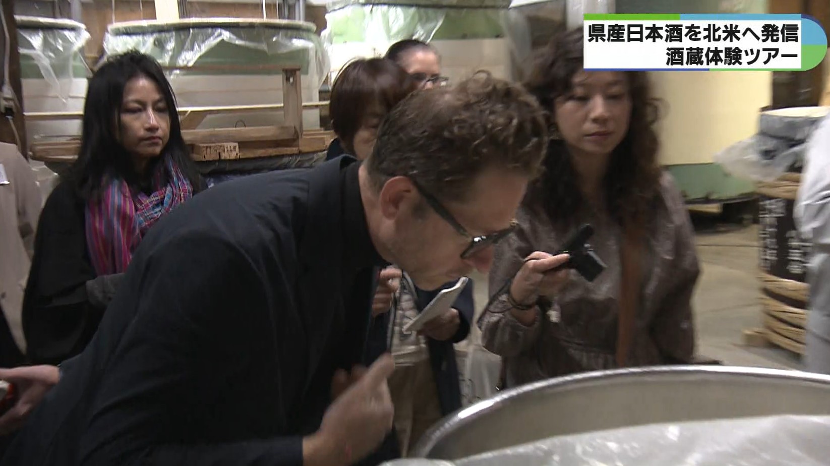 参加者らは普段は公開していない酒蔵内を、杜氏の案内で見学し香りを楽しみながら写真や動画を撮るなど日本酒への知識を深めていました。