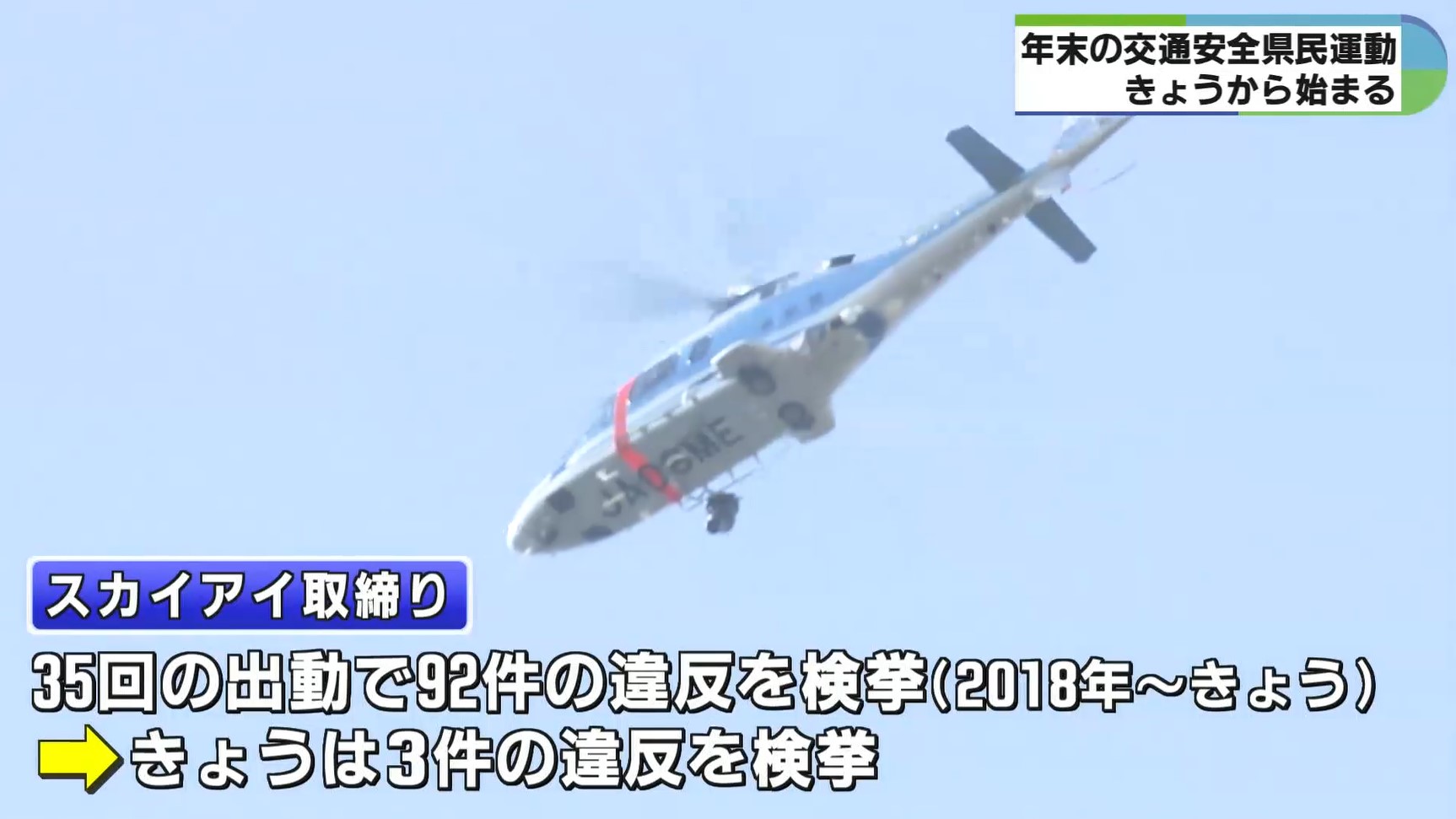 あおり運転などを上空から 「スカイアイ取締り」出動 年末交通安全県民運動はじまる