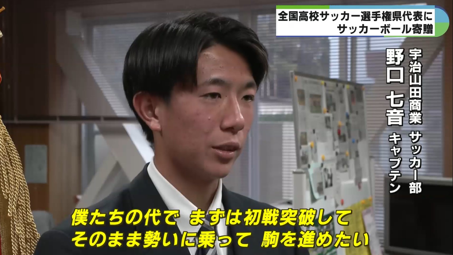 「僕たちの代で初戦を突破」 全国大会にのぞむ山商サッカー部にボールなど贈られる