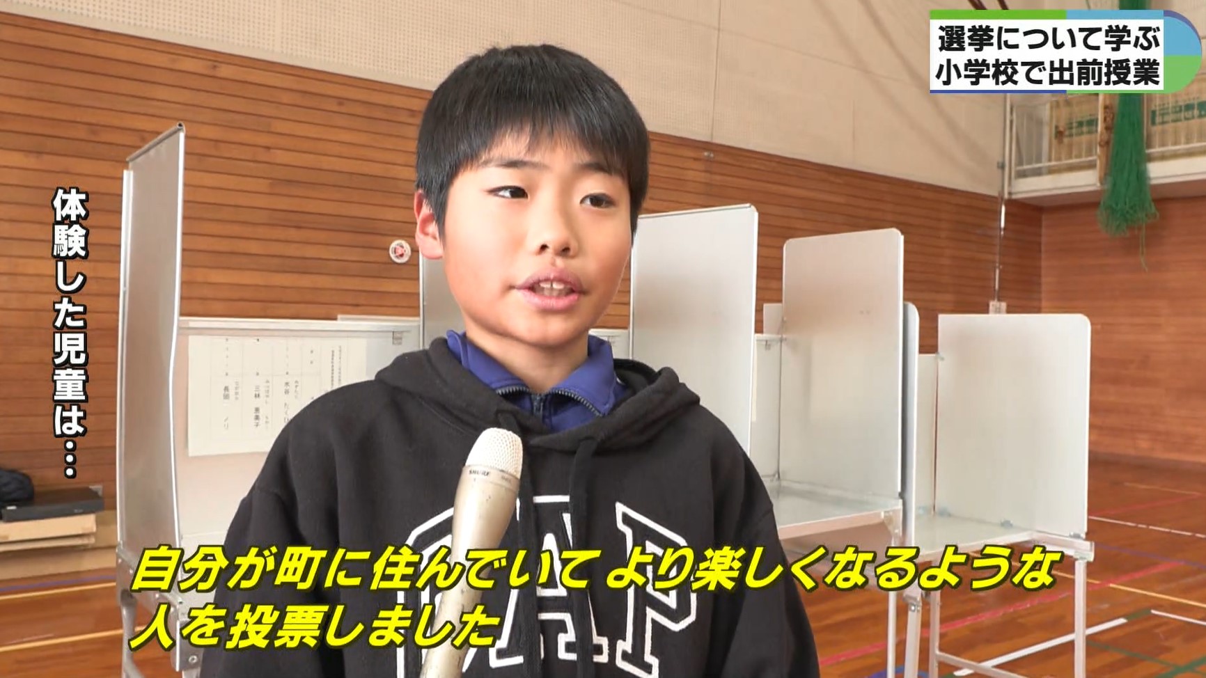 児童たちはこの後、先生が候補者役となる架空の町長選挙を体験しました。