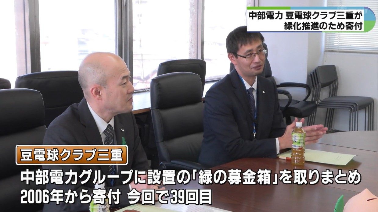 中部電力グループの各部署に設置した「緑の募金箱」を、豆電球クラブ三重が取りまとめて2006年から寄付しているもので、今回で39回目となります。