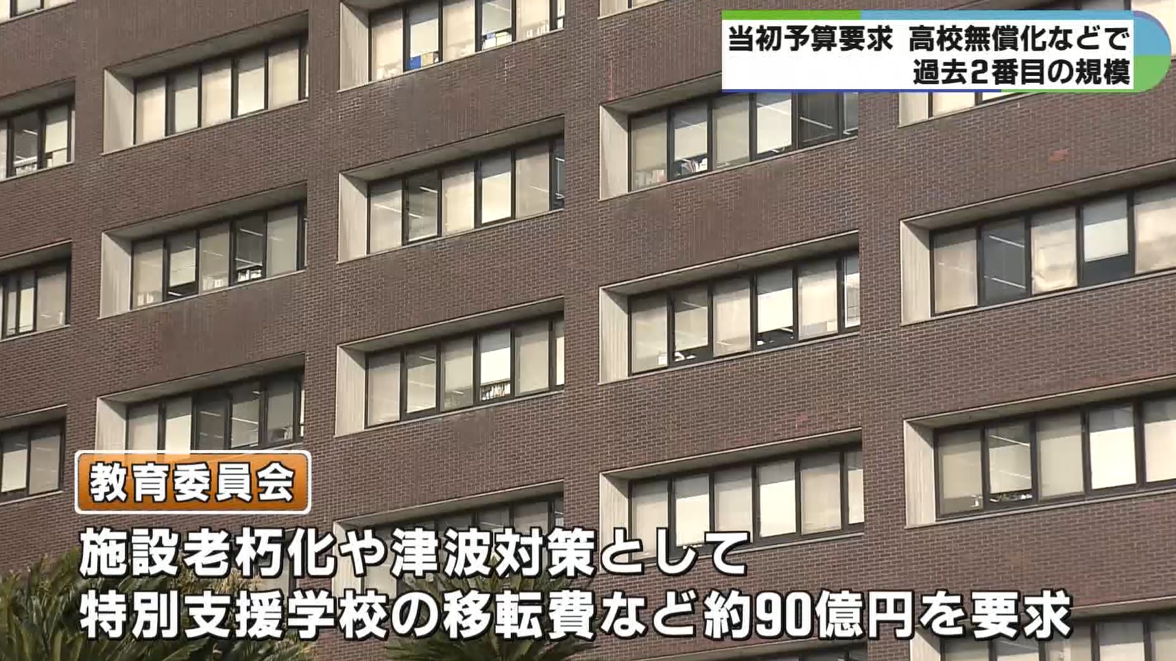 教育委員会の要求額は今年度の当初予算から81億円の増額となっていて、施設の老朽化や津波対策として県立の盲学校と聾学校の校舎を津市内の内陸部に移転する費用などとして、約90億円を要求しています。