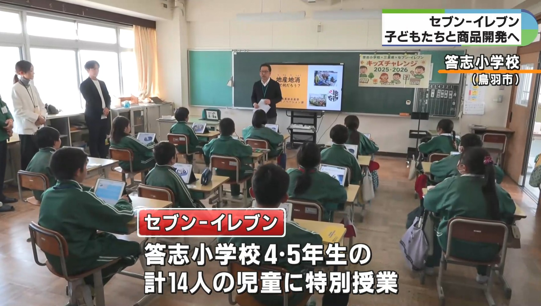 鳥羽市の離島、答志島にある答志小学校にセブンーイレブンジャパンの社員が訪れ、4年生、5年生あわせて14人の児童に特別授業が行われました。