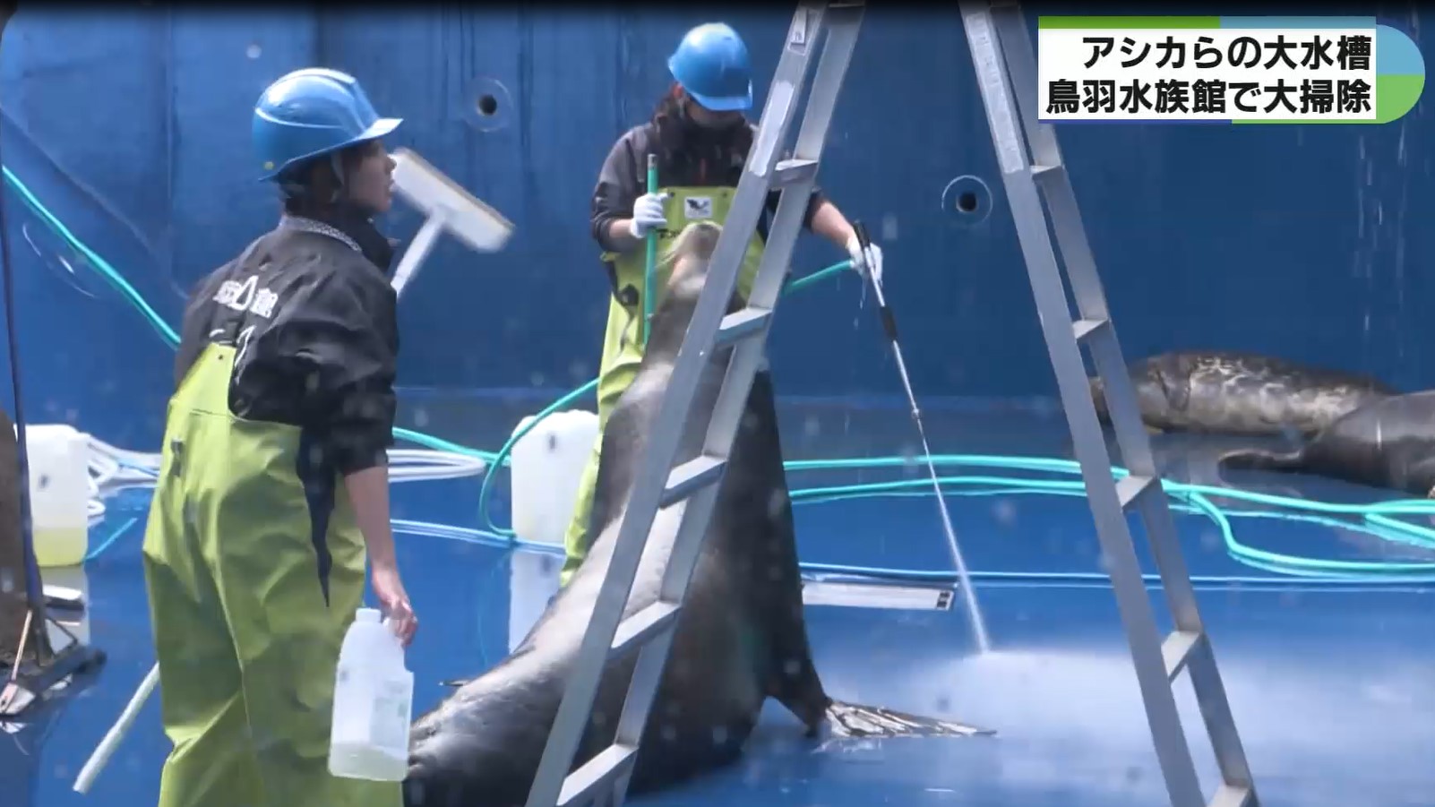 三重県鳥羽市にある鳥羽水族館では、アシカやアザラシなどが飼育されている大水槽で、年末恒例の大掃除が行われました。