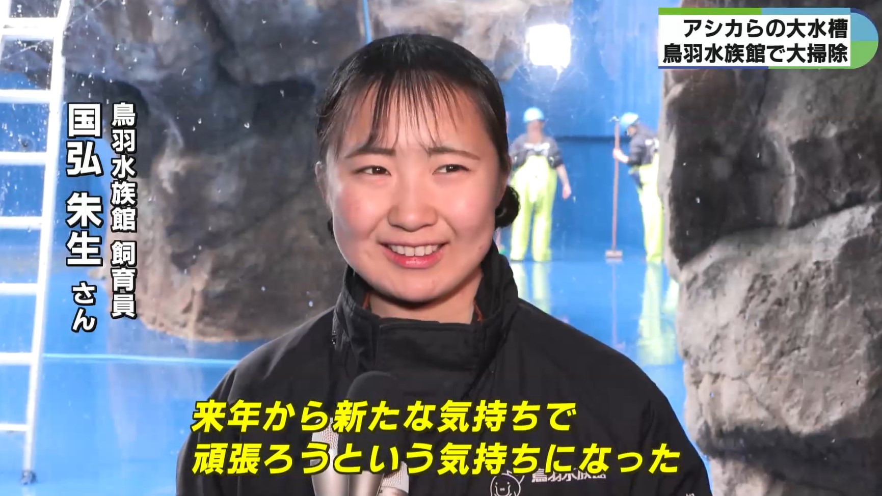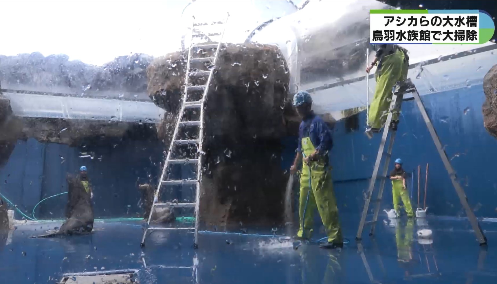 鳥羽水族館で海獣たちの水槽 年末恒例の大掃除