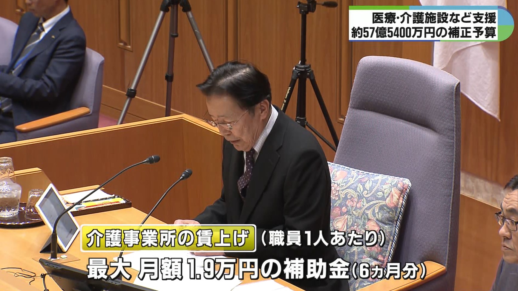 それにより、県内の介護事業所に職員への賃上げの補助金として職員1人あたり最大で月額1.9万円の補助金6カ月分が支給されるほか、大規模災害への備えに対する費用として1事業所あたり20万円の補助金が支給されます。