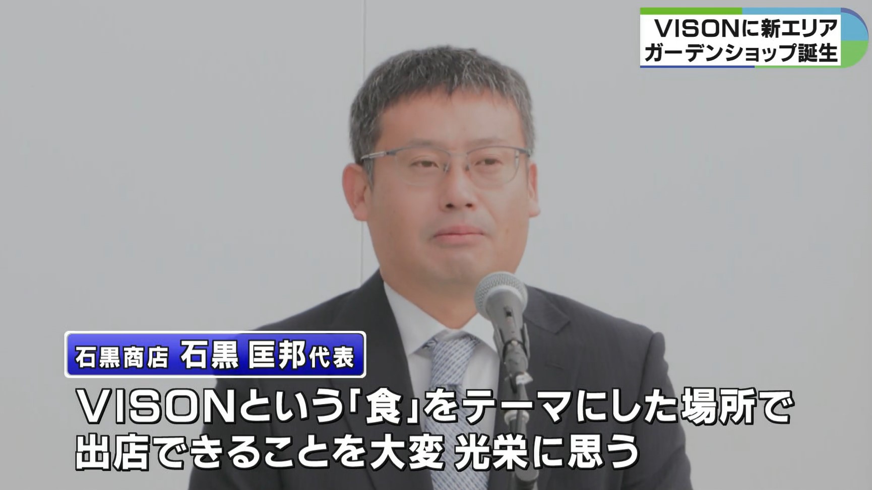 内覧会ではガーデンショップの運営を担う植木や果樹などを扱う石黒商店(桑名市)の石黒匡邦代表が「ヴィソンという食をテーマにした場所で出店できることを、大変光栄に思う。いまがスタートではなくこれから育っていければ」と挨拶しました。