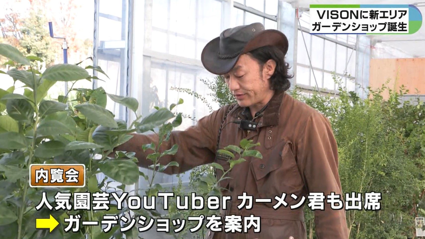 また、連携している人気園芸Youtuber・カーメン君も出席していて「もっと気軽に、もっと楽しく暮らしにグリーンを」をコンセプトにしたガーデンショップ内を案内しました。