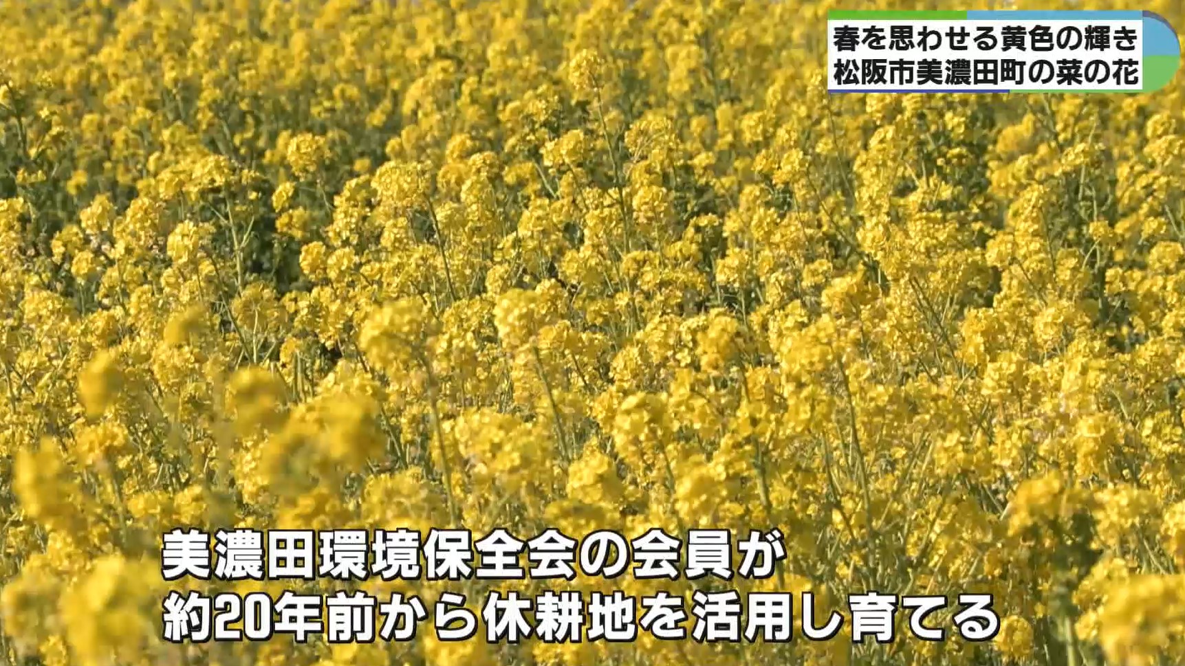 ここ数日のぽかぽか陽気のなか、三重県松阪市美濃田町から満開となった菜の花のたよりが届きました。
