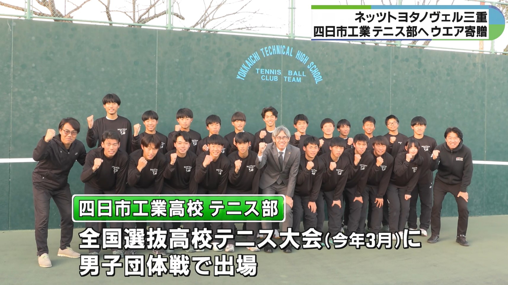 三重県四日市市に本社を置く自動車販売会社が、22日、全国大会に出場する四日市工業高校テニス部にテニスウエアを寄贈しました。