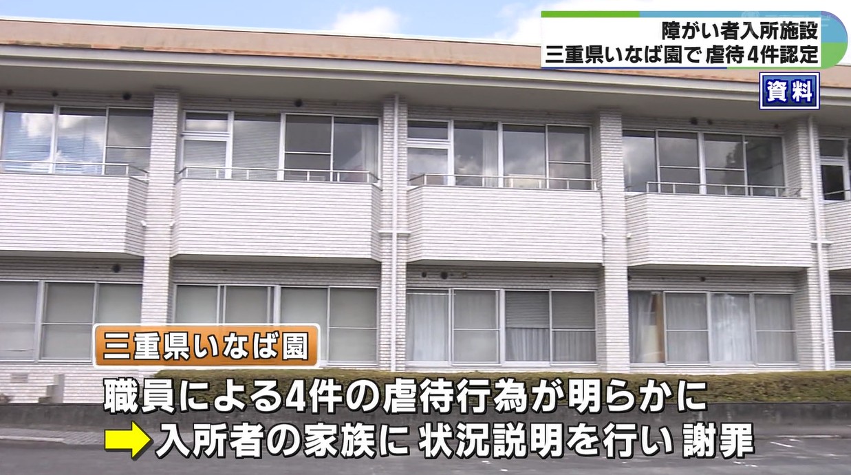 三重県の外郭団体三重県厚生事業団が運営する津市にある障がい者入所施設「三重県いなば園」で、2025年、職員による入所者への虐待が4件あったことが明らかになりました。
