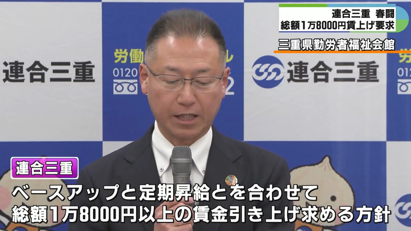 連合三重の番条喜芳会長は、今年の春闘において毎月の基本給などを引き上げるベースアップと年齢や勤続年数によって上がる定期昇給とを合わせて総額1万8000円以上を目安とした賃金の引き上げを求める方針を明らかにしました。