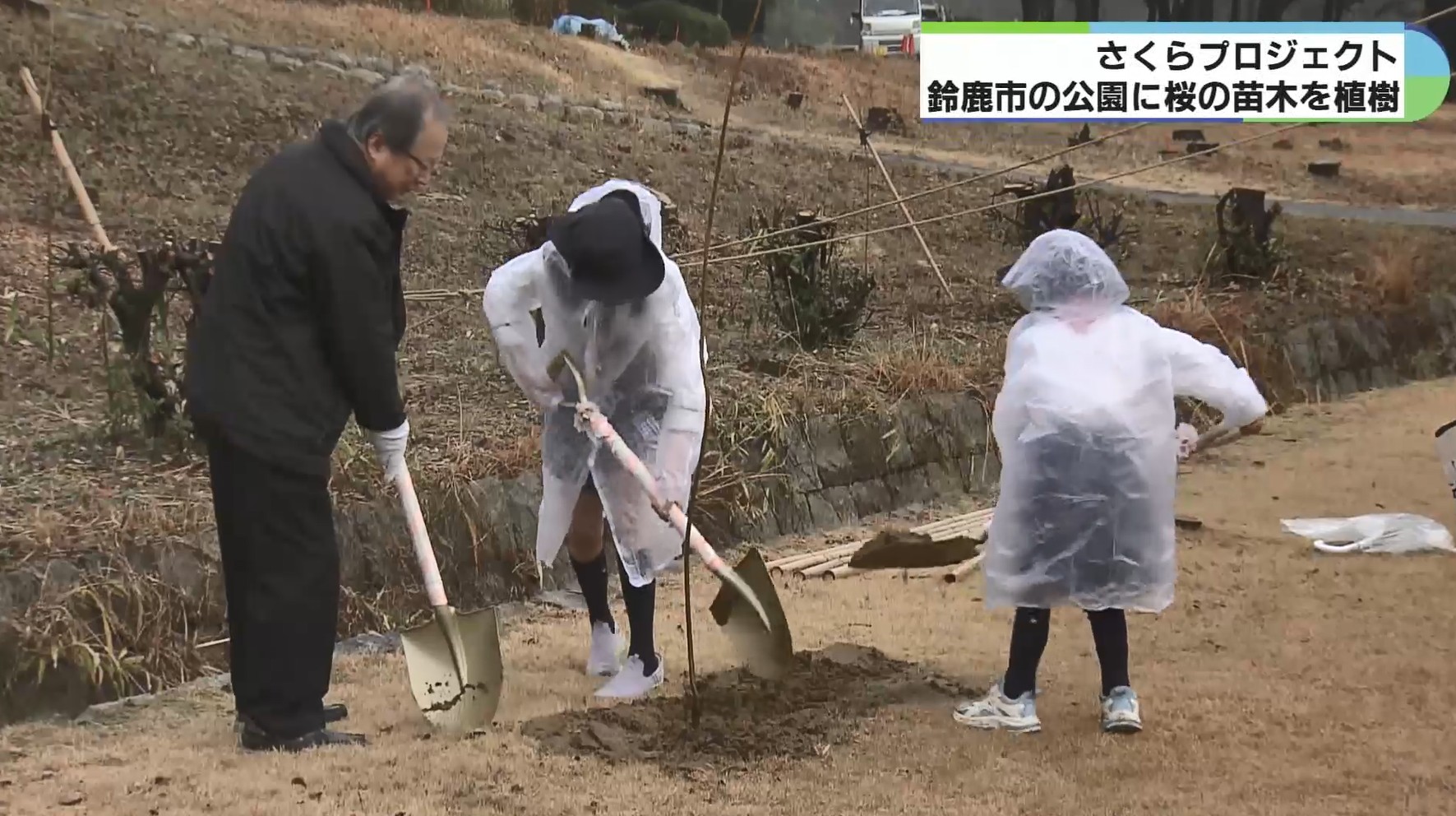 三重県に新たな桜の名所をつくり出そうと、11日、鈴鹿市のダイセーフォレストパークで桜の苗木の植樹式が行われました。