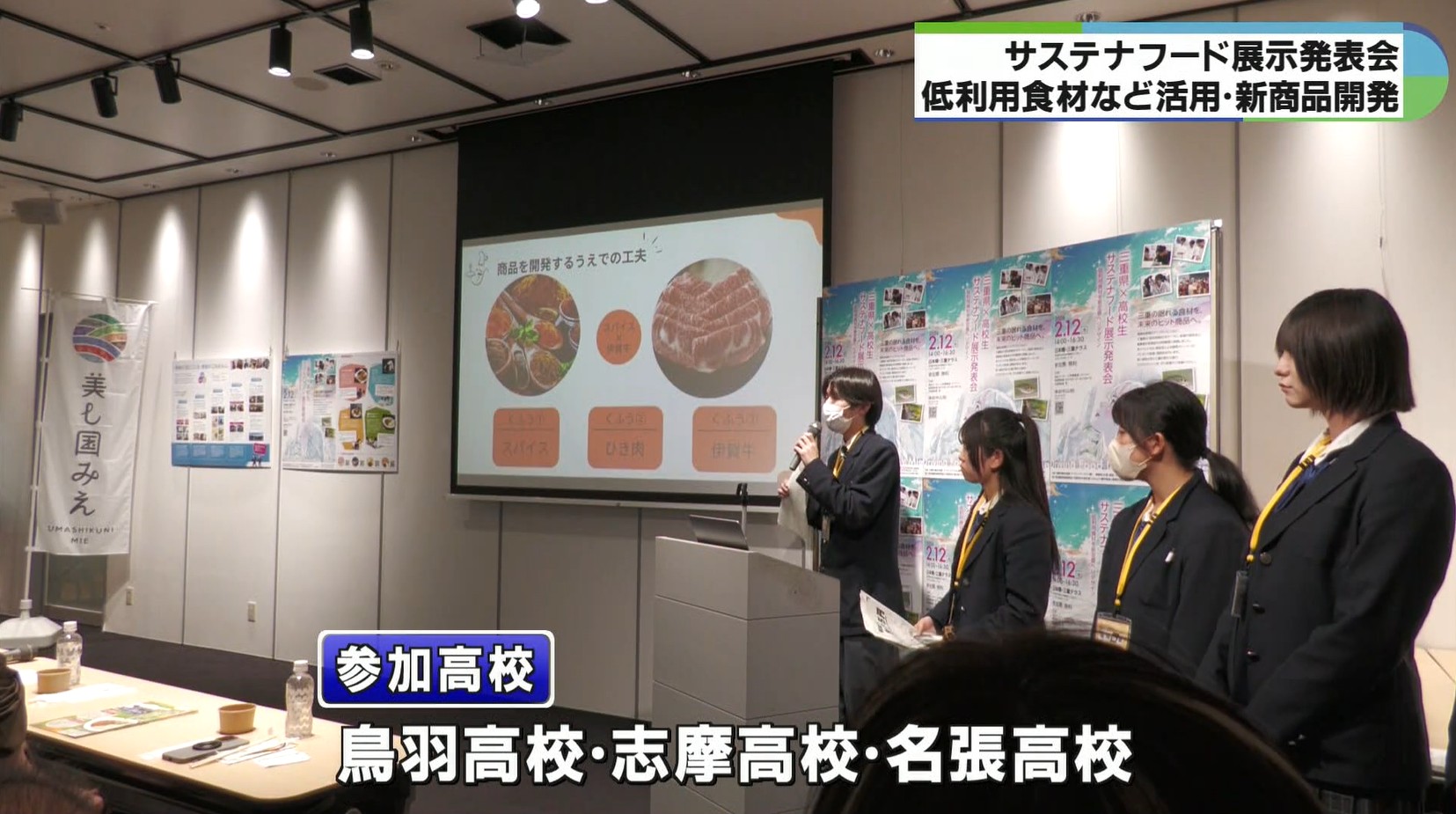 発表会では、名張高校をはじめ県内3つの高校生たちが、商品開発の背景や食材の魅力についてプレゼンテーションにのぞみました。