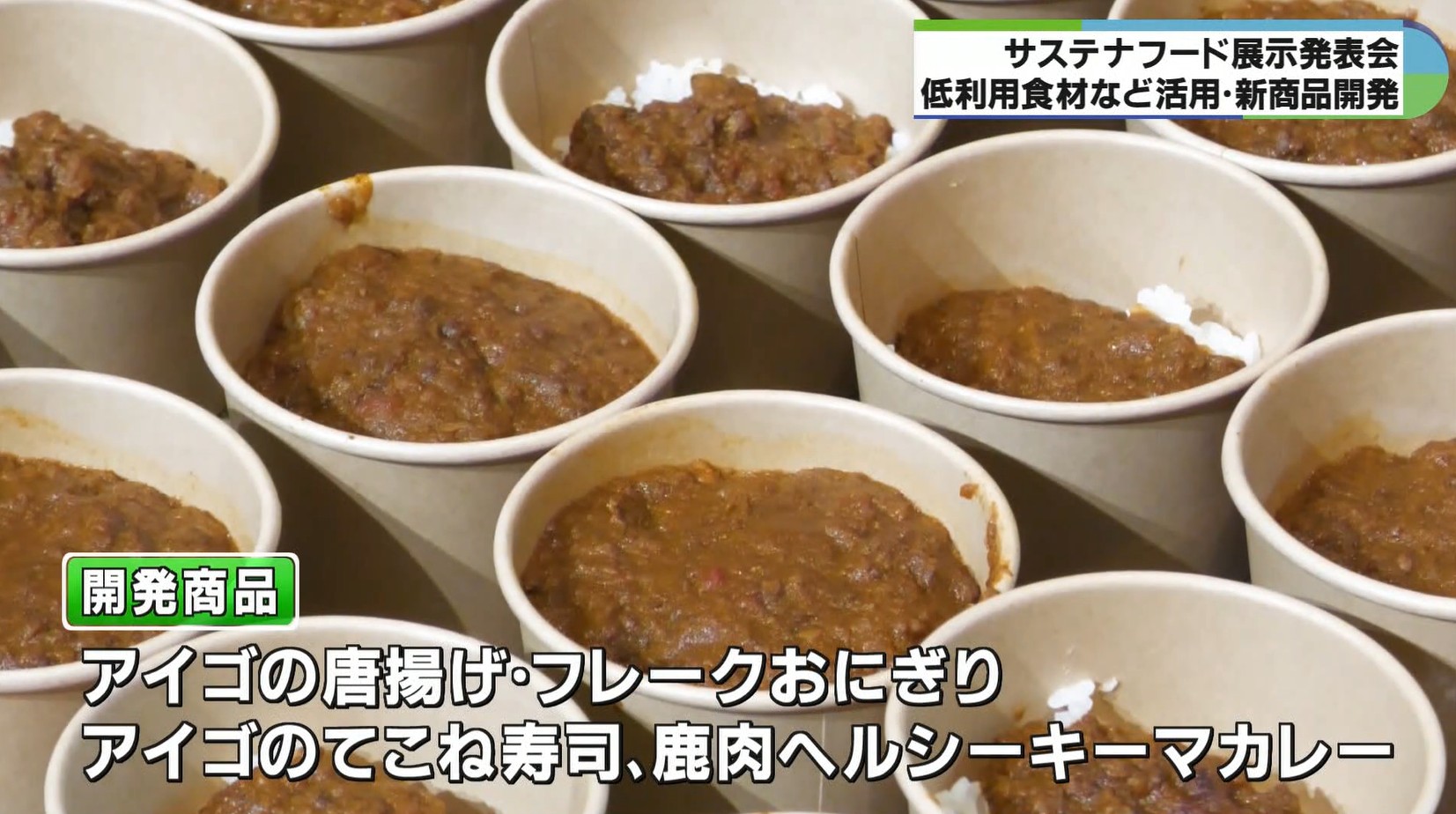 「地域の困りごとを地域のごちそうに」をテーマに、アイゴや鹿肉など、味もよく栄養価もありながら、処理の手間などから、あまり活用されていない食材を高校生と事業者が共同で新商品の開発に挑戦しました。