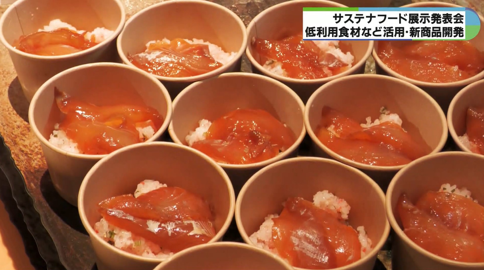 低利用食材などを活用した、新商品のプレゼンテーションなどを行う「サステナフード展示発表会」が、12日、東京日本橋の三重テラスで開かれました。
