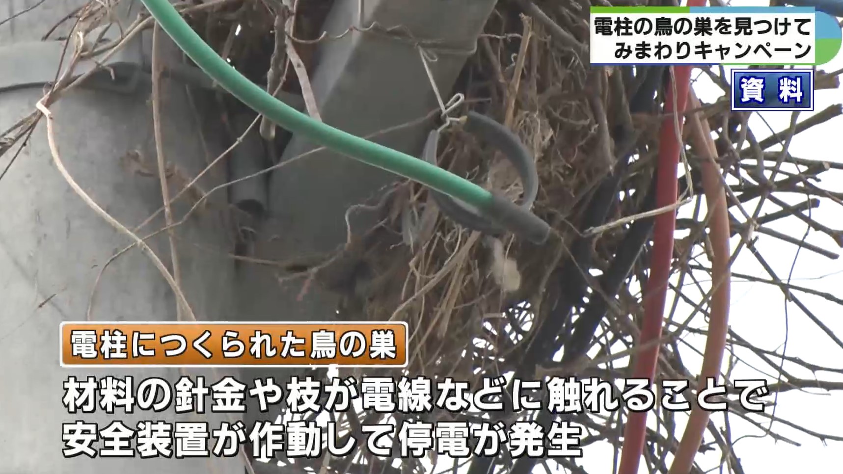 停電の原因にもなる電柱につくられた鳥の巣を一般の人にも見つけてもらおうと、中部電力パワーグリッドでは16日から「鳥の巣みまわりキャンペーン」を三重県と愛知県で始めました。