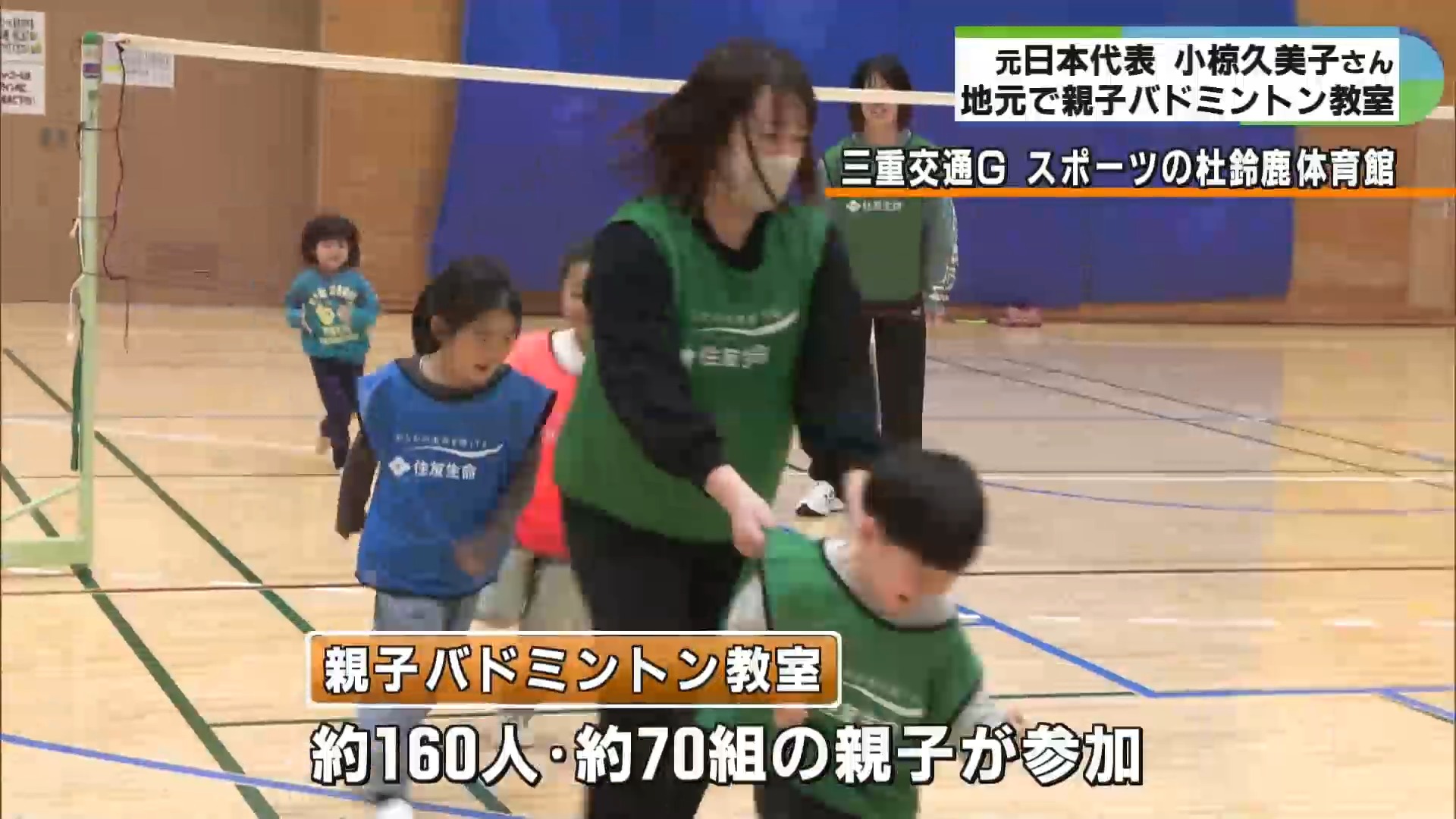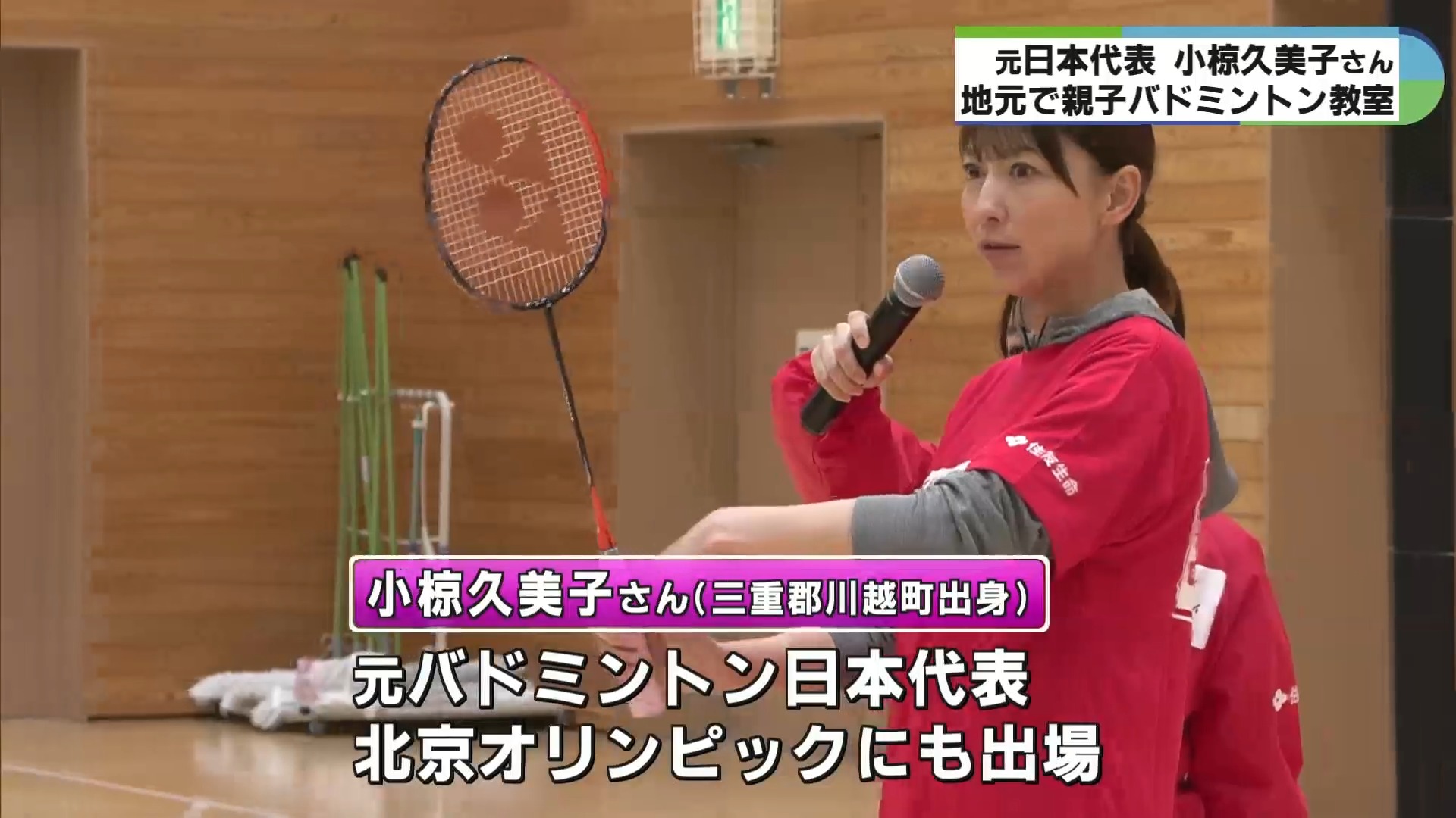 親子でスポーツに親しんでもらおうと、三重県出身で元バドミントン日本代表の小椋久美子さんによる親子バドミントン教室が23日、鈴鹿市で開かれました。