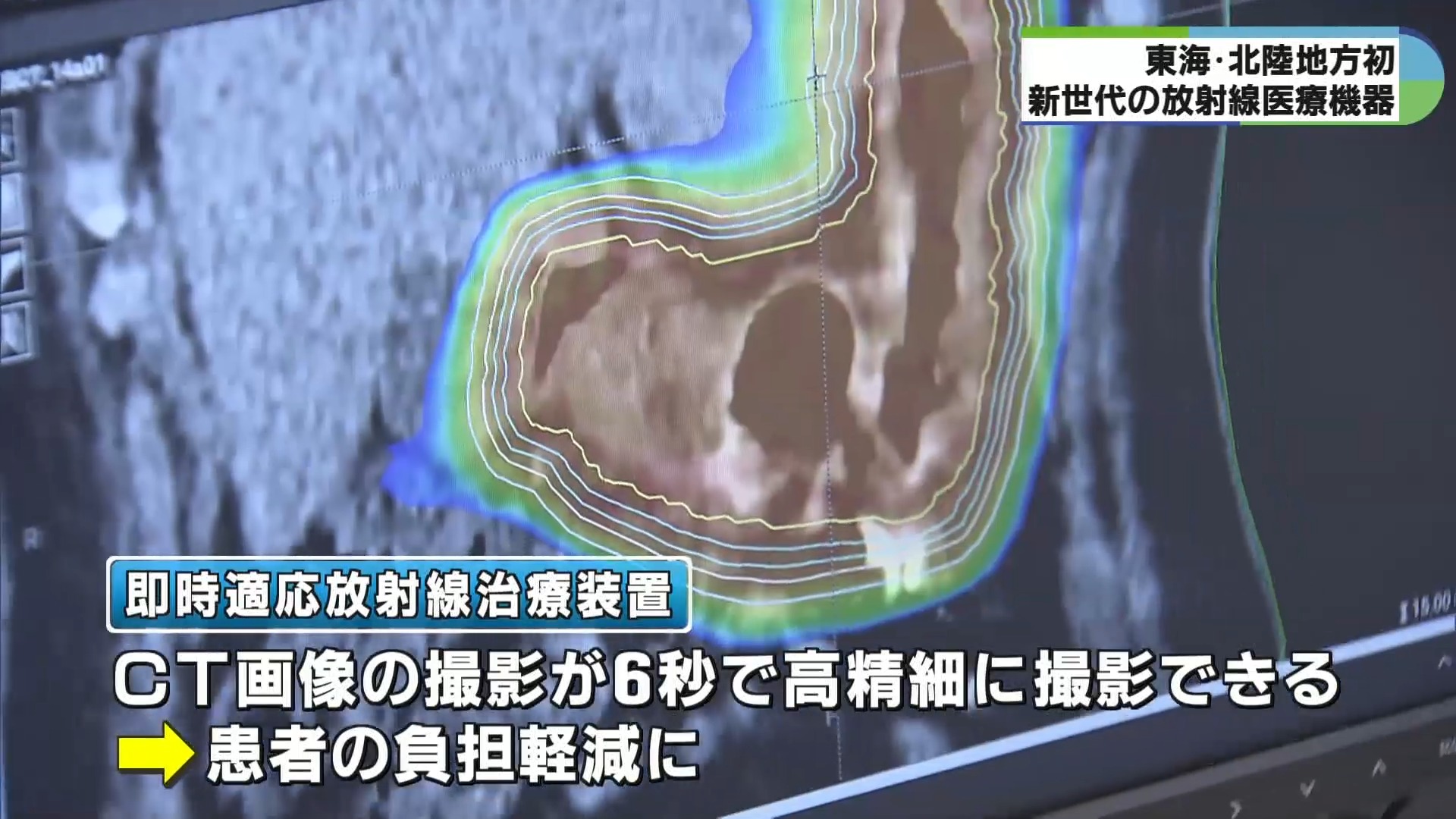 AIを使った専用システムにより、直腸がんや肝臓がんなど日ごとに変化する腫瘍や周辺臓器の位置関係や形状に合わせて十数分で治療方針を修正し、治療を実施できます。