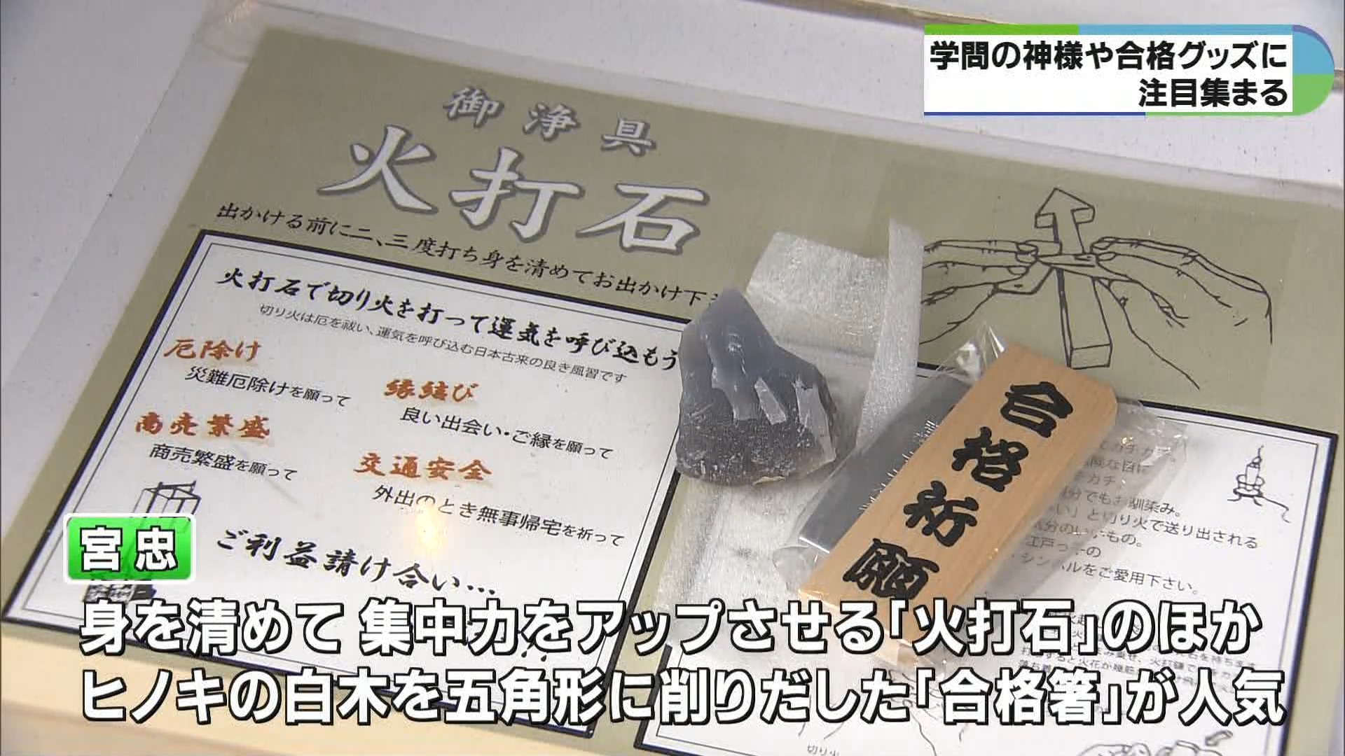 また、神棚やお供えに使う道具などを扱う宮忠では、身を清めて集中力をアップさせる「火打石」のほか、ヒノキの白木を五角形に削りだした「合格箸」が特に人気を集めているということです。