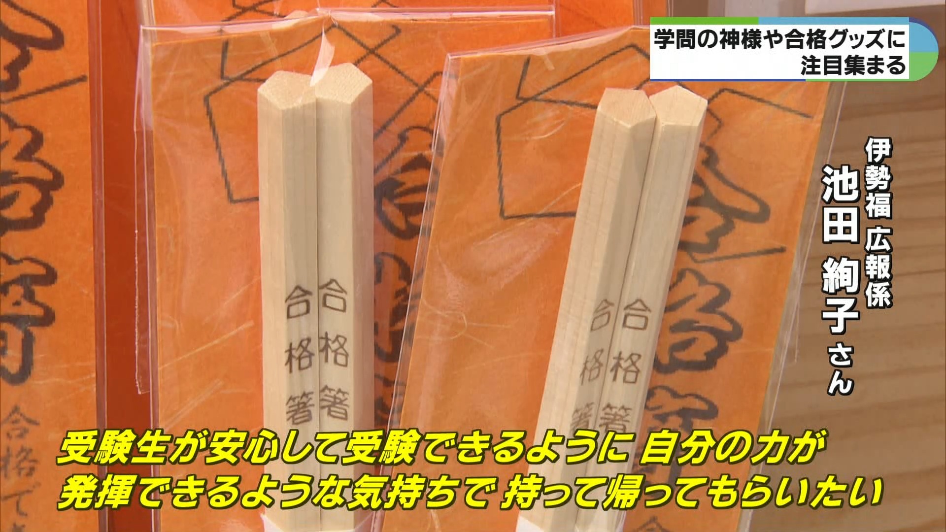 伊勢福広報係の池田絢子さんは「五角形の箸の合格箸は、1月に一度完売して、受験シーズンなので大急ぎで入荷した状態。受験生が安心して受験できるように、自分の力が発揮できるような気持ちで持って帰ってもらいたい」と話しています。
