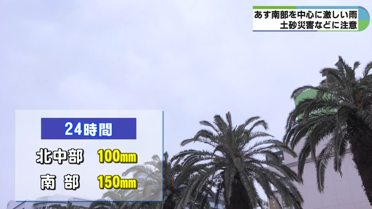 3日夕方までに予想される1時間降水量は、多い所で北中部20ミリ、南部30ミリ、3日夕方までの24時間降水量は、多い所で、北中部100ミリ、南部150ミリと予想されています。