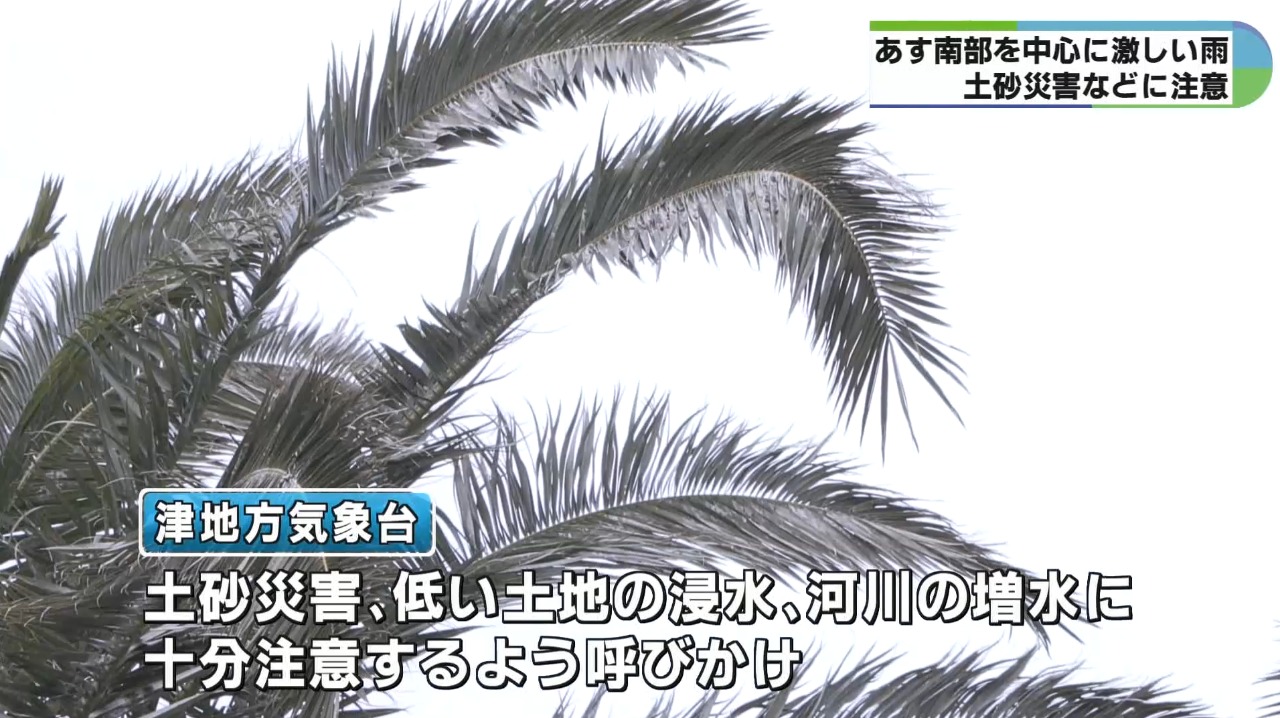 津地方気象台は土砂災害や、低い土地の浸水河川の増水に注意するよう呼びかけています。