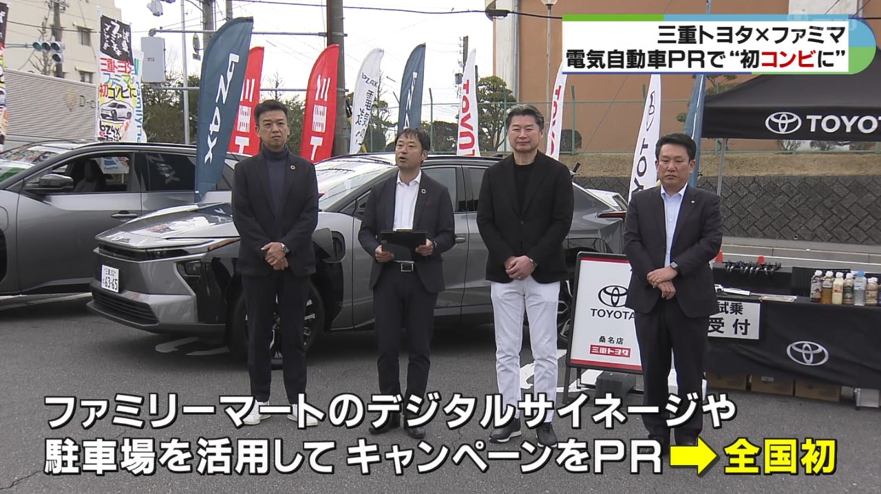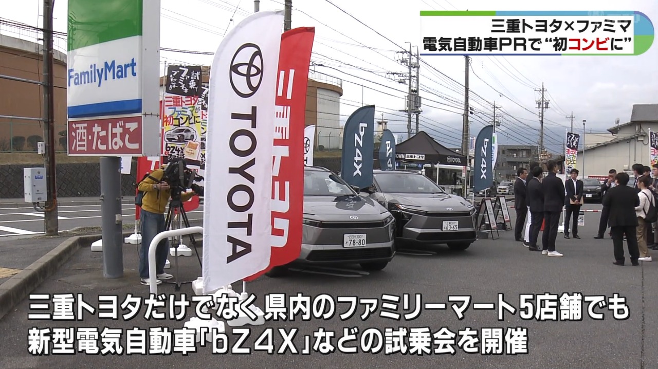 6日に、三重トヨタの店舗だけでなく県内のファミリーマート5店舗で、去年11月に発売されたトヨタの新型電気自動車「bZ4X」などの試乗会が行なわれました。
