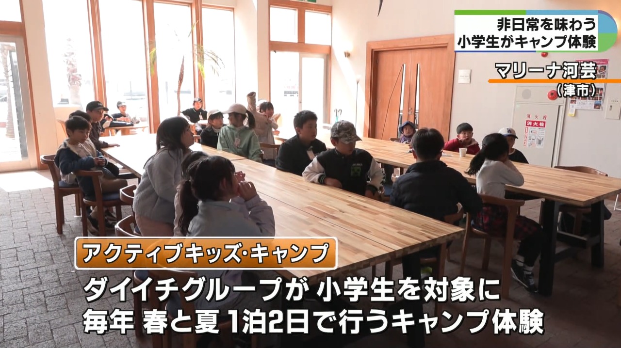 音楽スクールやマリン事業などを営むダイイチグループが小学生を対象に、毎年、春と夏に1泊2日で行っているキャンプ体験で、今回は子どもたちが自ら設営したテントに泊まる体験会を初めて開催しました。