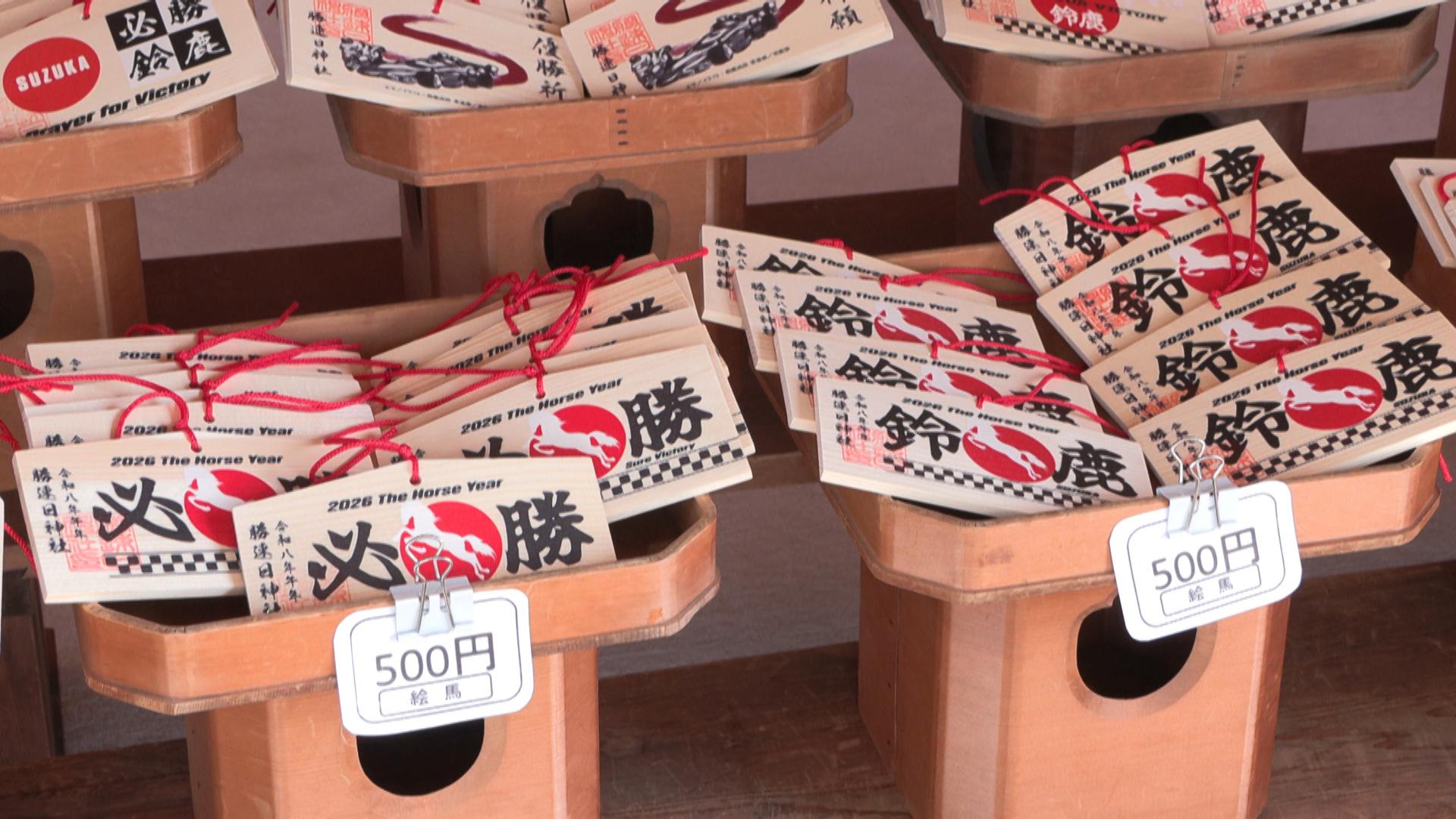 三重県鈴鹿市の近鉄白子駅近くにある勝速日神社では、F1日本グランプリの開催にちなみ、27日から3日間限定でオリジナルの絵馬が登場しました。