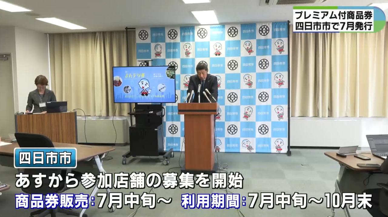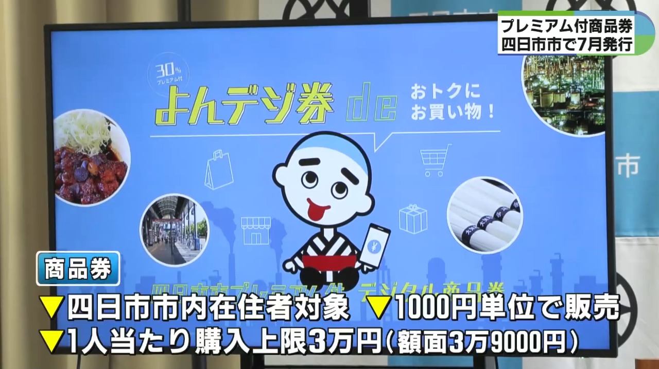 物価の高騰が長期化する中で、消費者を支援するとともに、地域産業の活性化を促そうと、三重県四日市市は市内の店舗で使えるプレミアム付きデジタル商品券を7月から発行します。