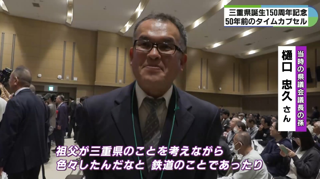 当時の県議会議長からのメッセージも入っていて、孫の樋口忠久さんは「祖父が三重県のことを考えながら色々話したんだなと。鉄道のことであったりとか、そういう話も聞いていたので、すごいなと思いながら、三重県を自分自身も大事にしていきたいなと思う」と話しました。