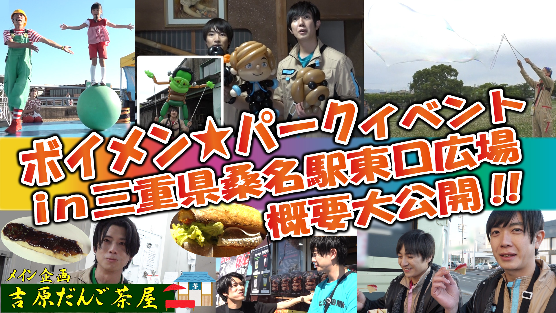 今回は10月18日(土)に三重県の桑名駅東口で開催するボイメン☆パークイベントの概要を大公開。吉原だんご茶屋に加え、魅力的なキッチンカーやパフォーマーたちが続々登場。お楽しみに!